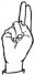 На ћирилици написано ЛУНА ЛОШИЋ састоји се из 9 слова [?]. Исписано ћириличном једноручном азбуком за глувонеме: